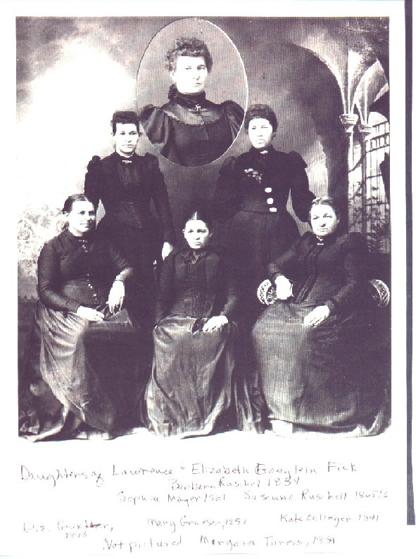 Daughters of Lawrence & Elizabeth Goeglein Fick Barbara Ruschel Sophia Mayer Susanna Ruschel Elizabeth Guinther Mary Grueser Kate Ohlinger Not pictured - Margaret Thress |