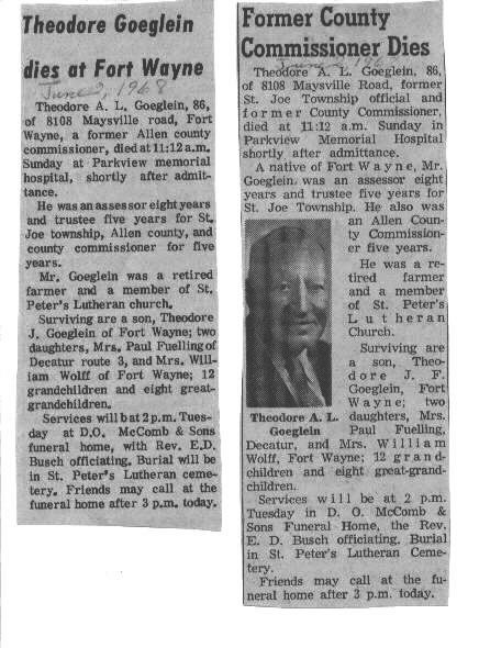 "Theodore J. F. Goeglein, 85, of Fort Wayne, a retired charter member
